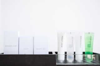 - Toiletries: soaps, shampoo/conditioner in small bottles, shower cap